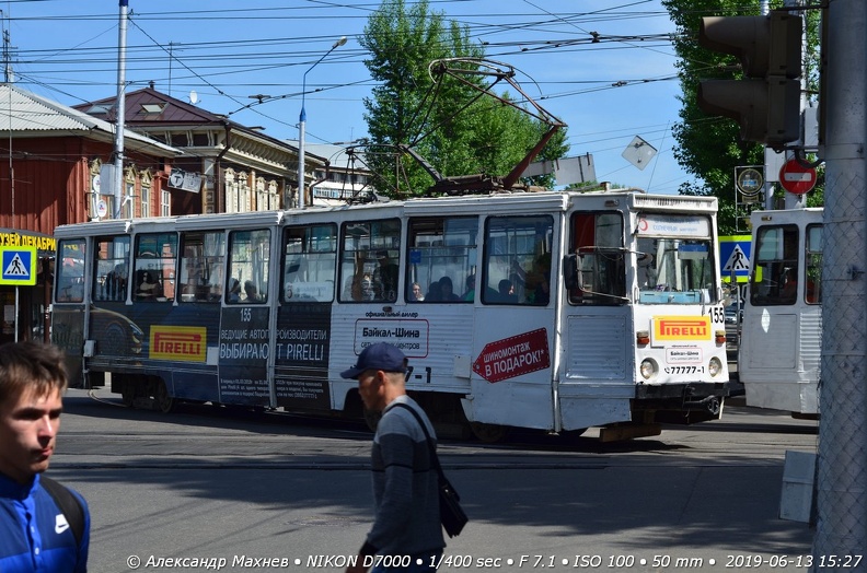 Трамвай № 155 на улице Декабрьских Событий двигается в сторону остановки Площадь Декабристов